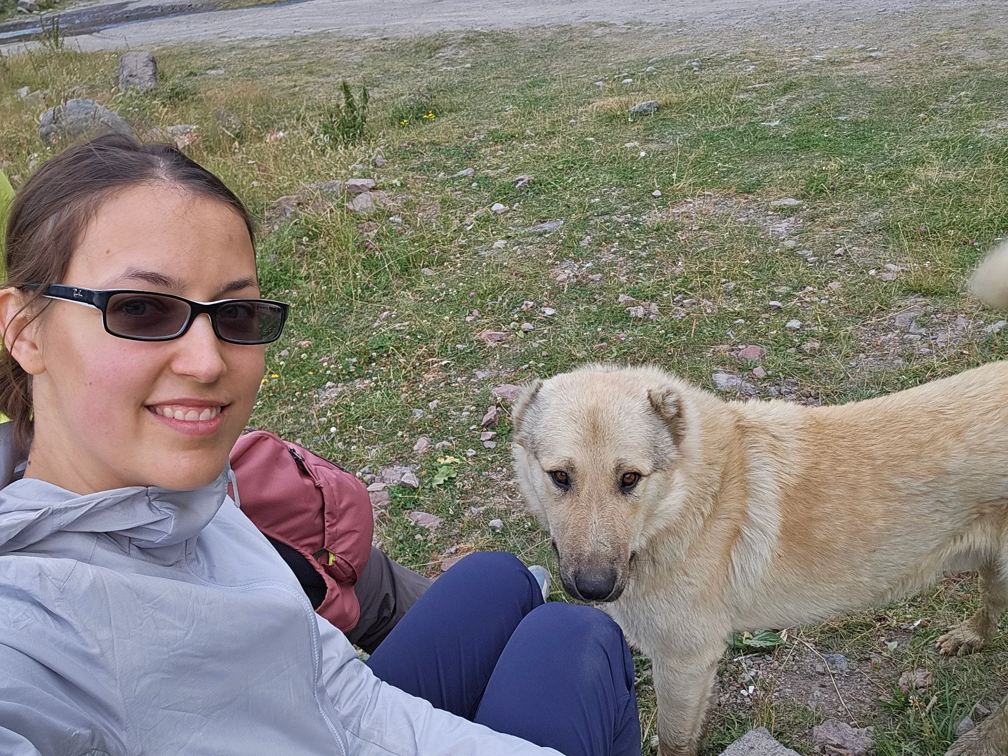 Из-за того, что на обратном пути мы шли без остановок, к нашей парковке мы пришли раньше, чем ожидали. Думали перекусить, но там ходила большая и довольно навязчивая собака, так что мы сперва побоялись вытаскивать еду (в конце все-таки скормили ей взятые с собой вареные яйца).