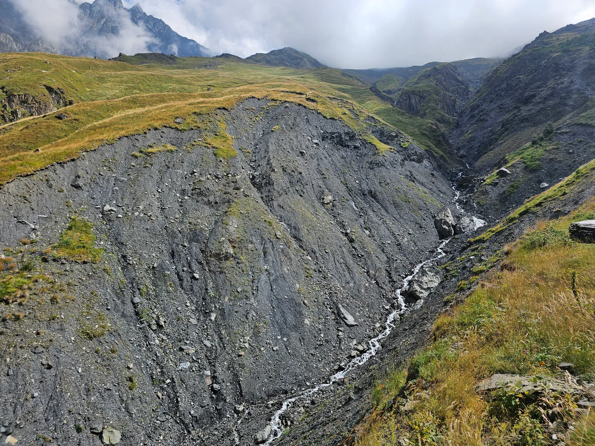 По самой долине было два пути с двух сторон реки: одна широкая плоская дорога, по которой иногда ездили машины местных, и узкая тропа по склону. Мы решили выбрать сперва узкую и более длинную тропу, чтобы, во-первых, лучше понимать, сколько нам нужно времени на возвращение обратно, во-вторых, чтобы посетить минеральный источник.
